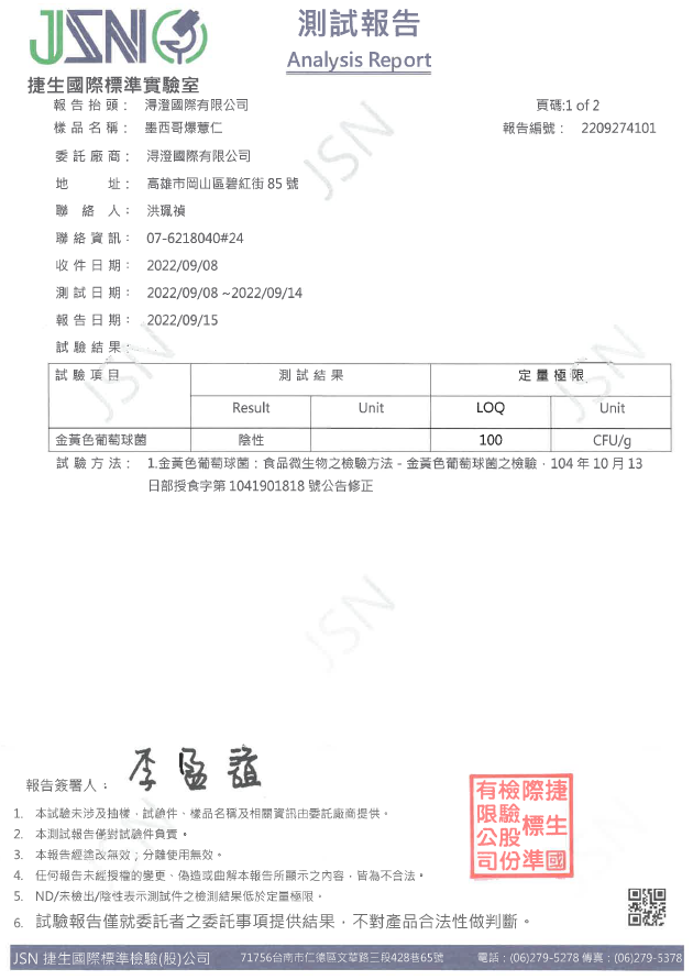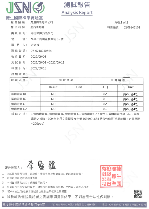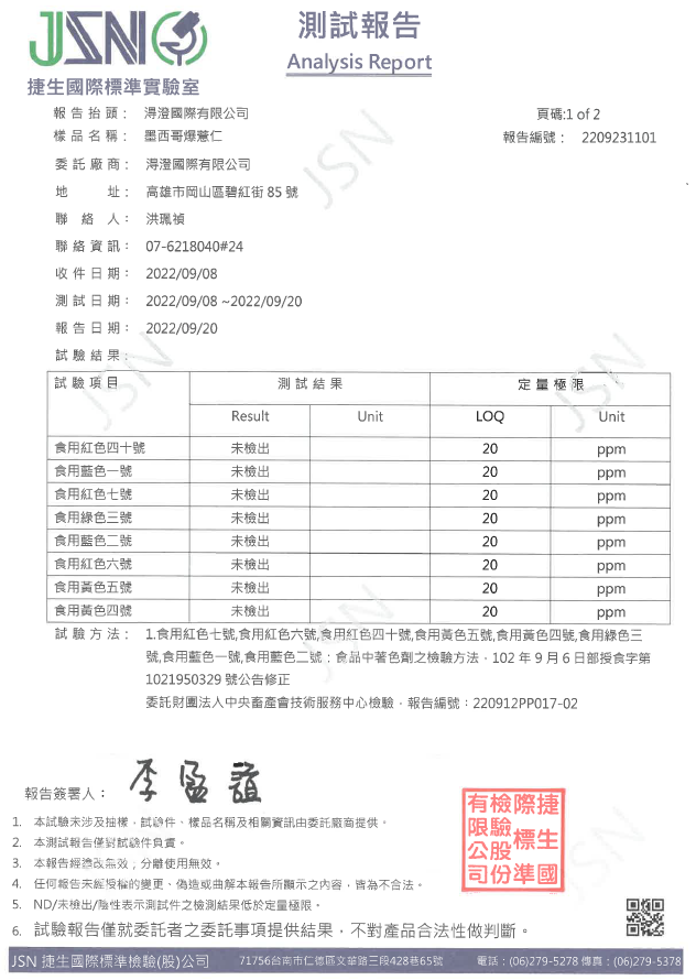 墨西哥爆薏仁檢驗報告