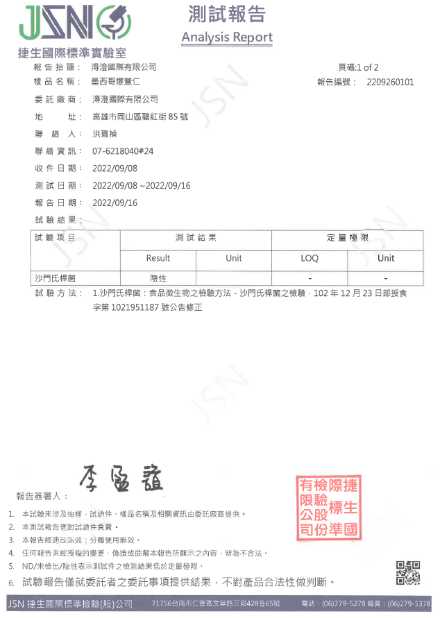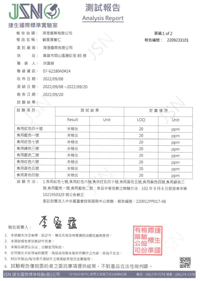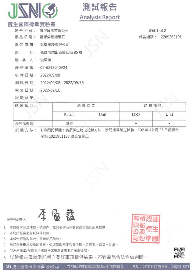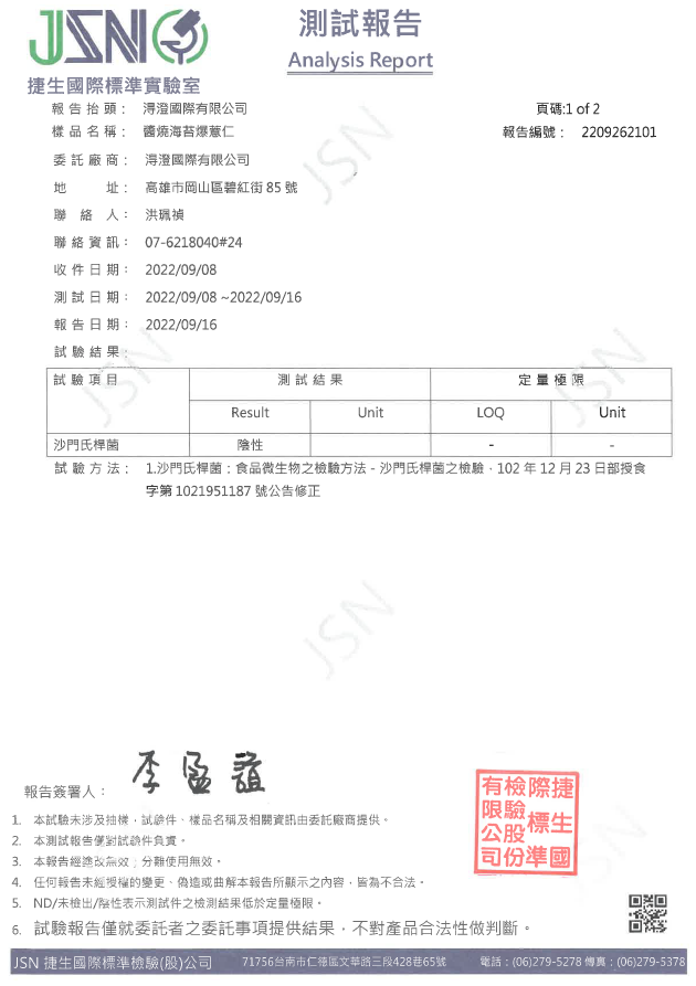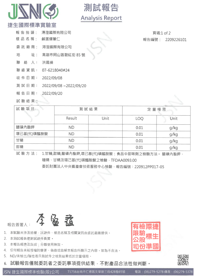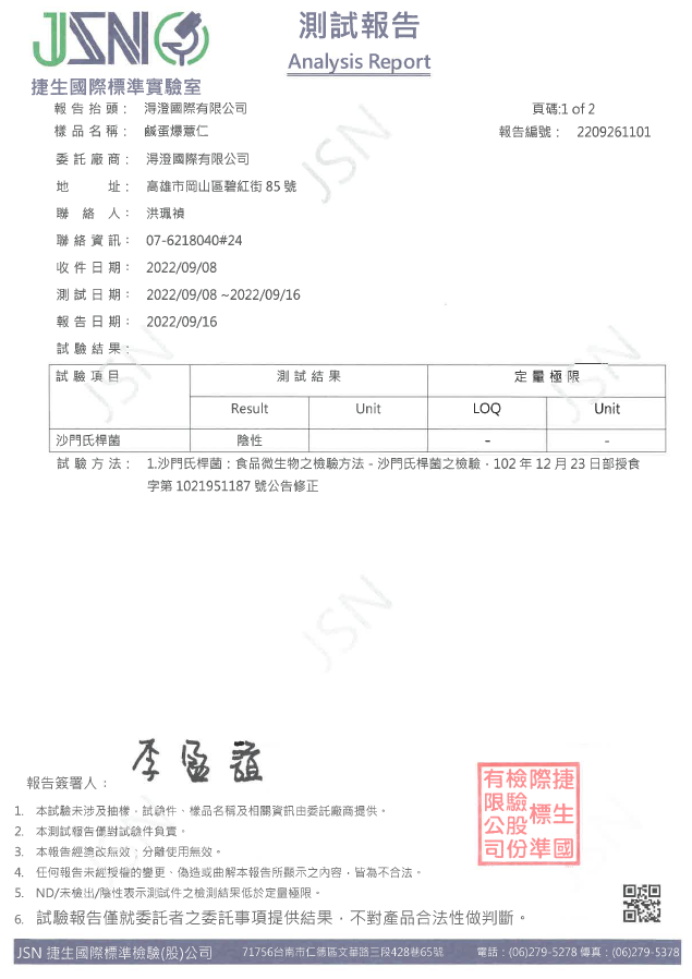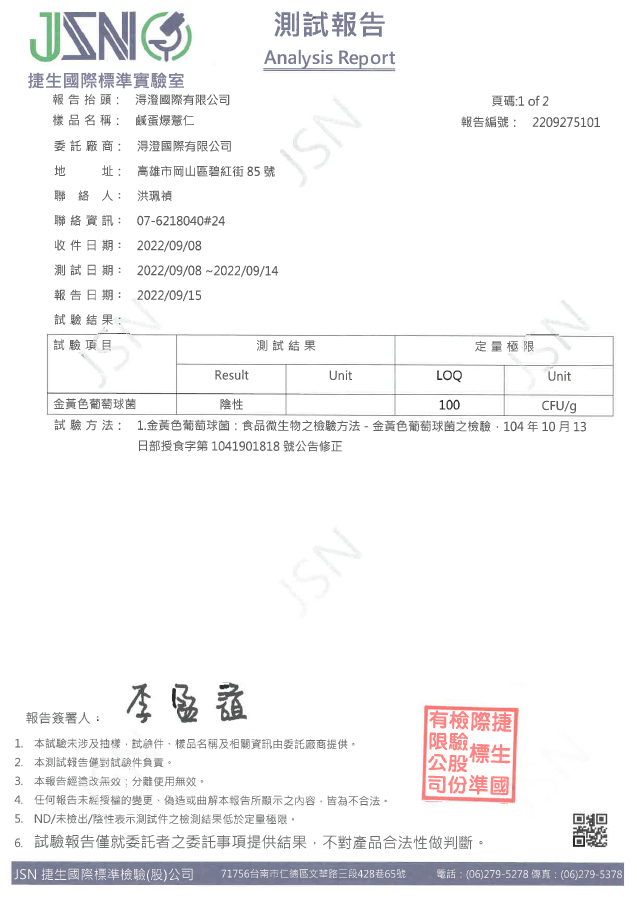 鹹蛋爆薏仁檢驗報告
