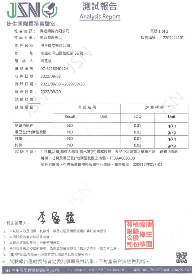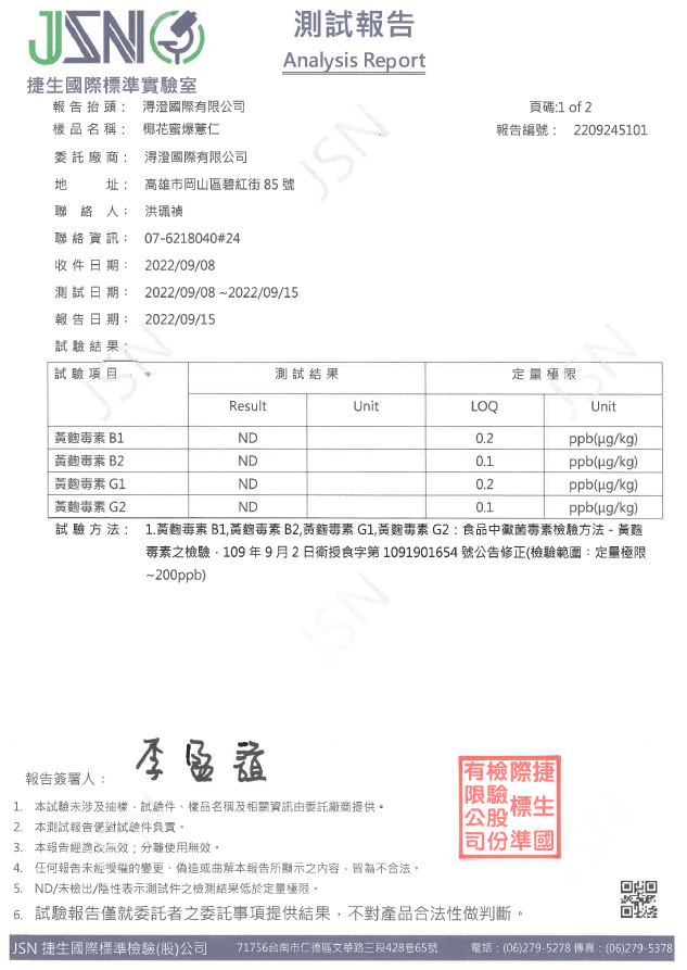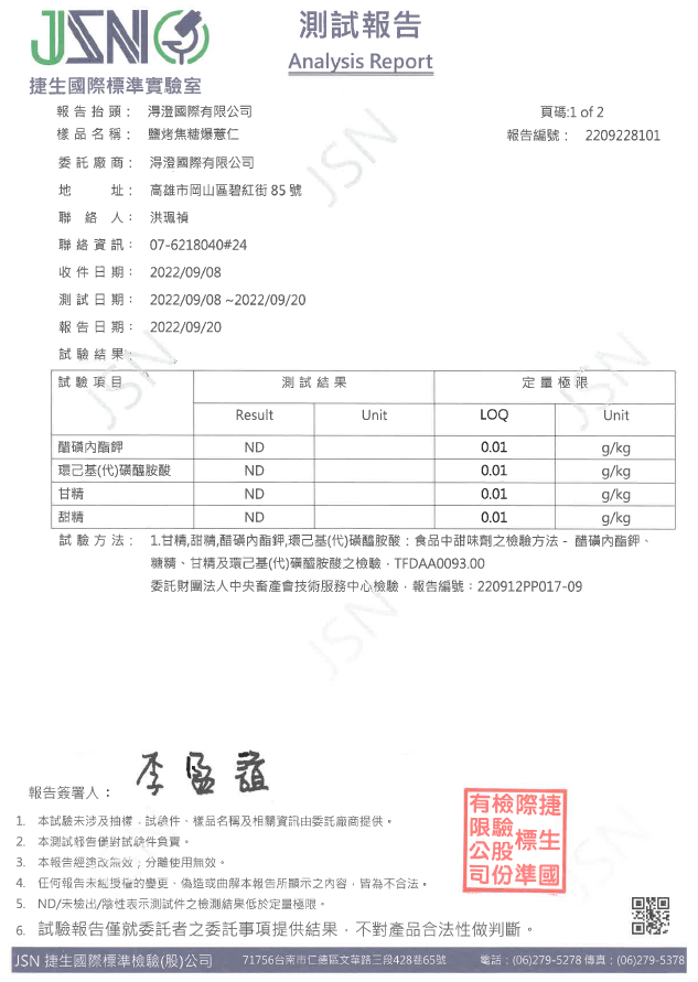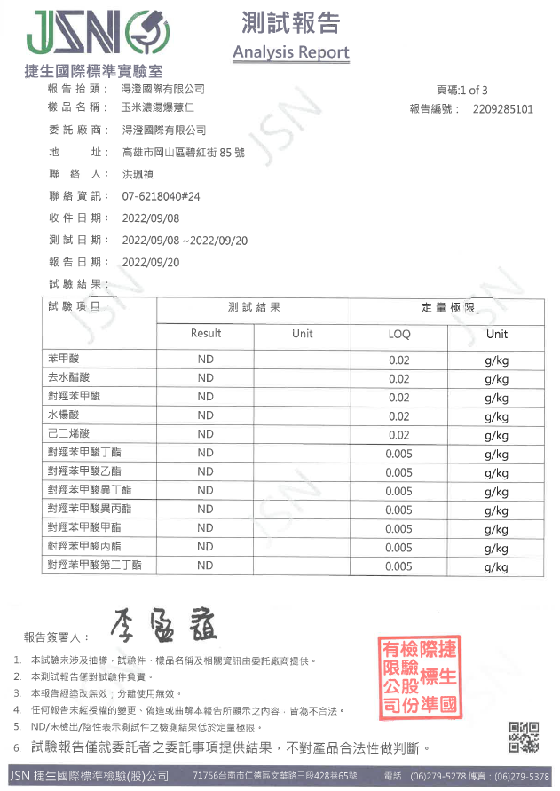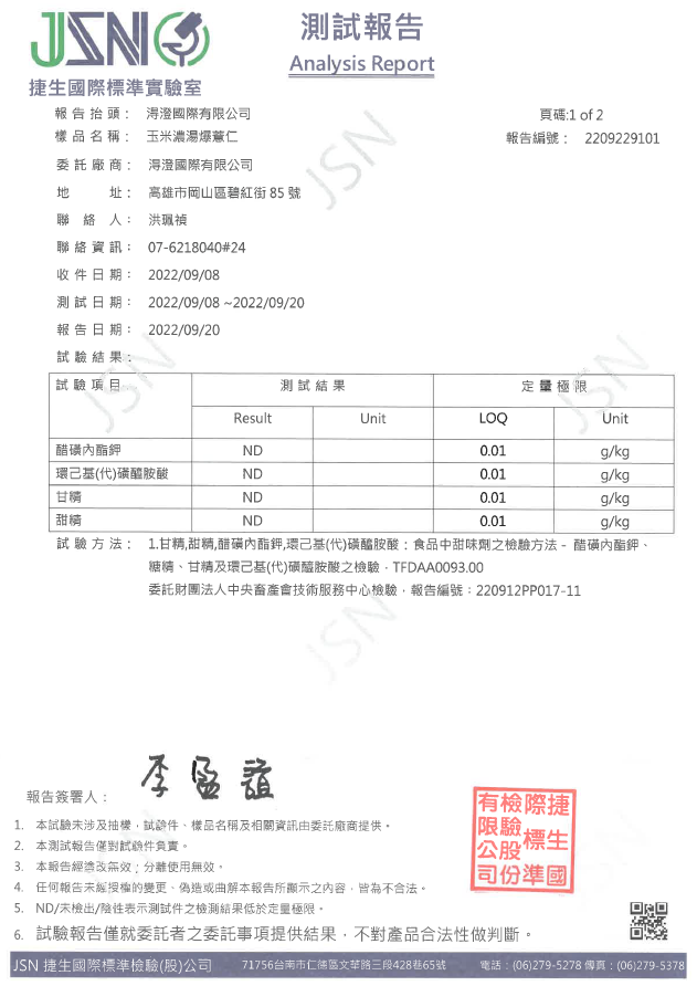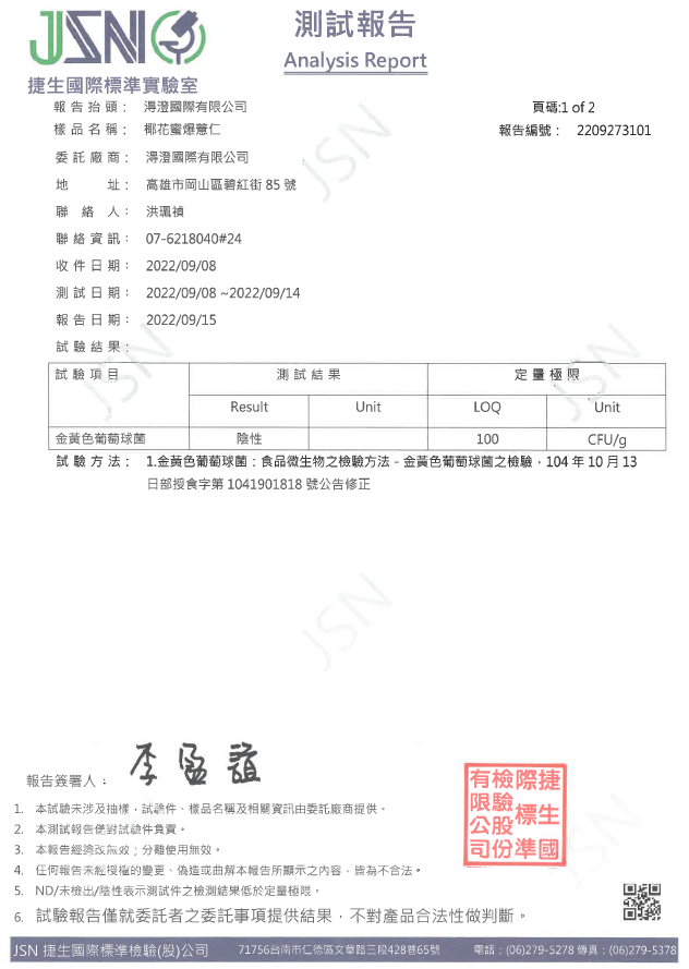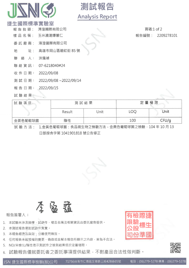 鹽烤焦糖爆薏仁檢驗報告