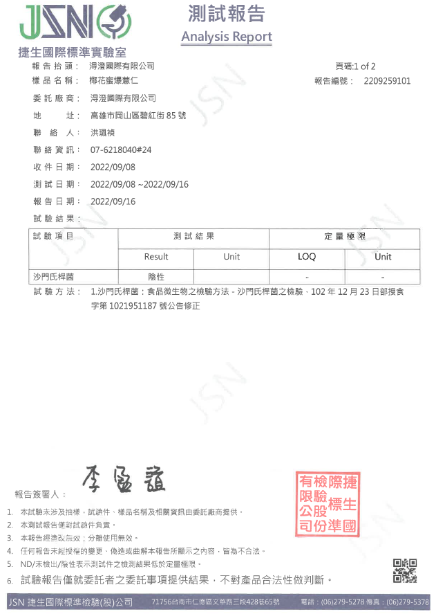 椰花蜜爆薏仁檢驗報告