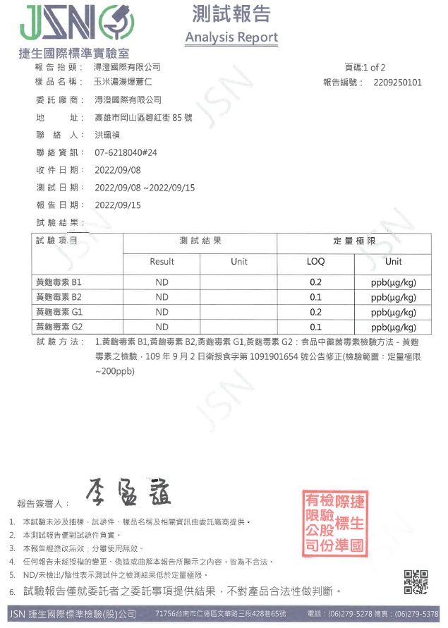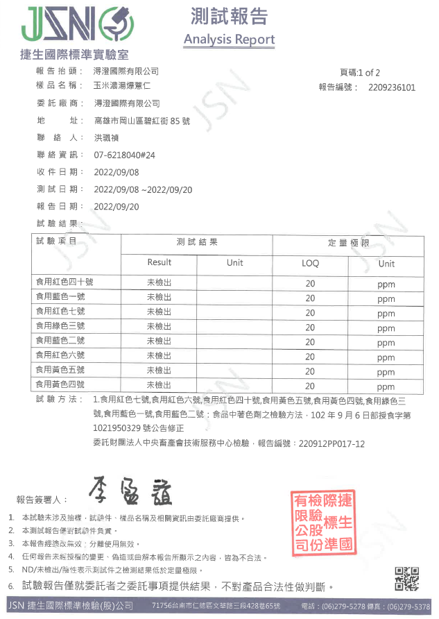 玉米濃湯爆薏仁檢驗報告