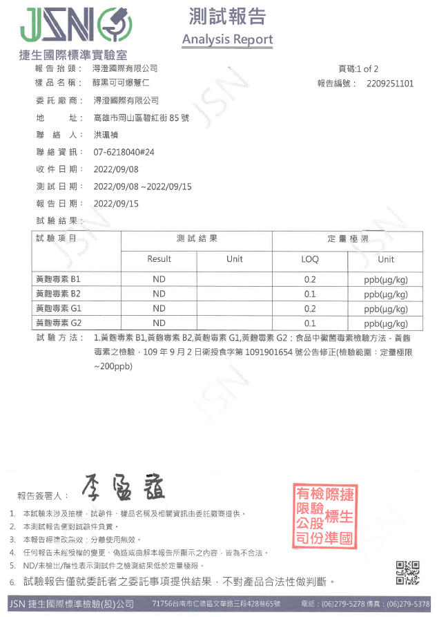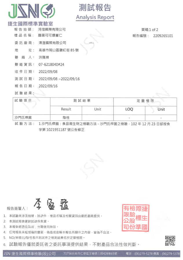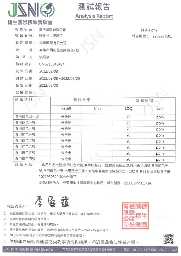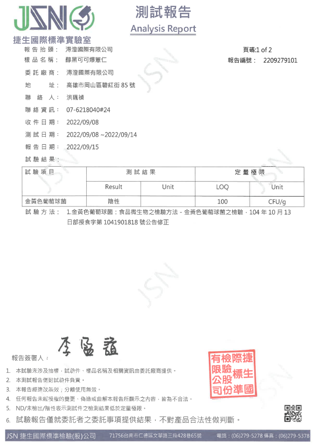 醇黑可可爆薏仁檢驗報告