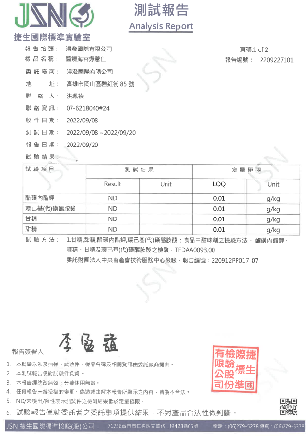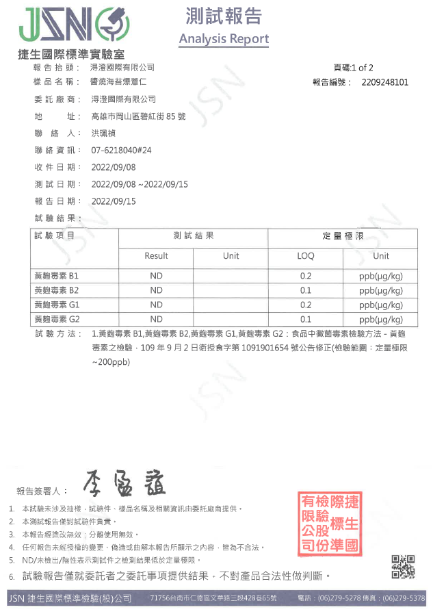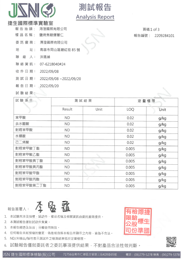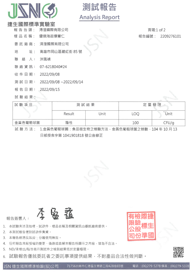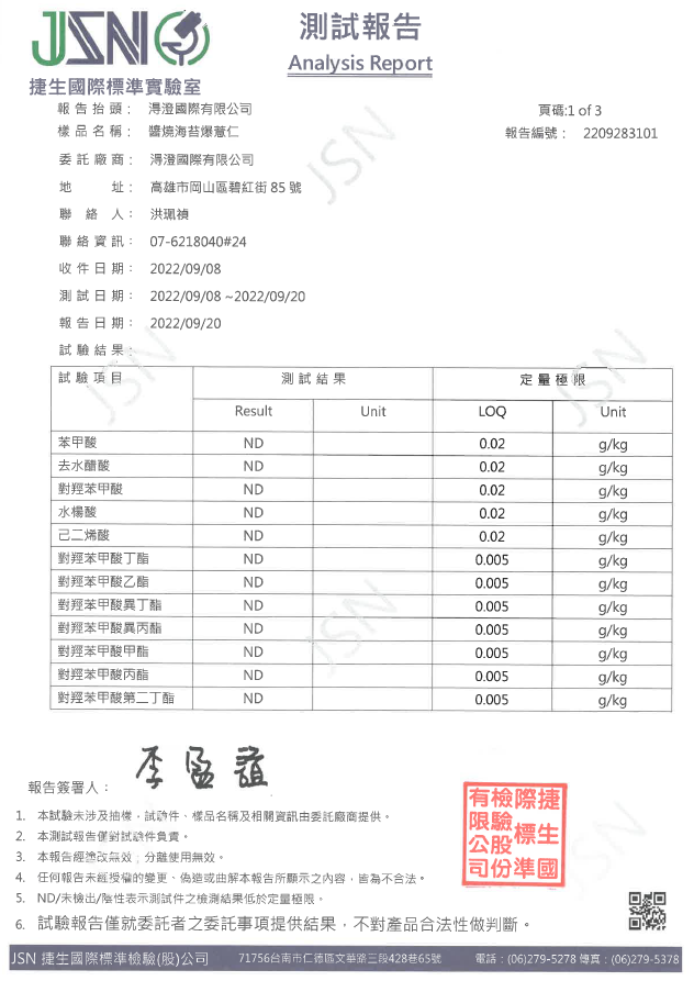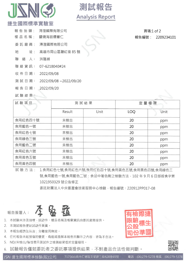 醬燒海苔爆薏仁檢驗報告